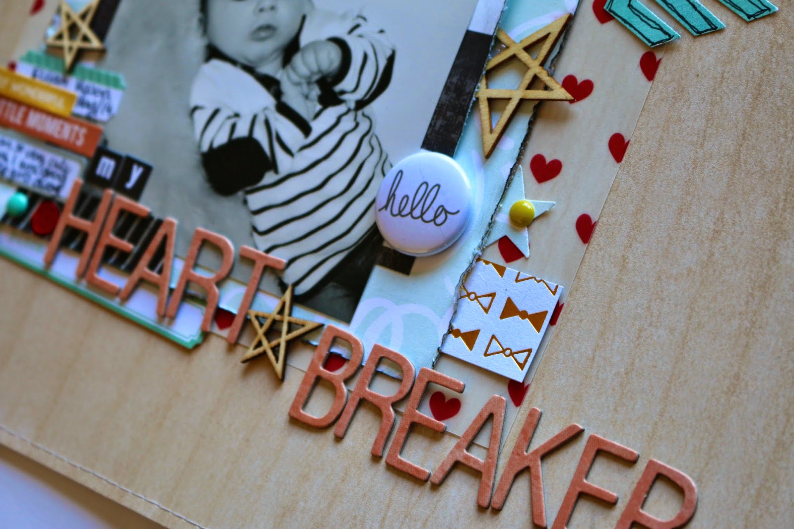 I decided to theme the page around my son being a little heart breaker. I know that I am really biased because he is my son - but I do think he is pretty damn cute. I think we are going to have to ward the girls away. In fact at my mother's a group a couple of the Mum's are already calling Elijah their daughter's future husband. Haha!